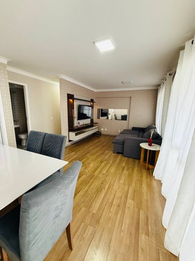 Com 3 dormitórios sendo ambos suíte, sala de estar, sala de jantar, cozinha ampla, terraço gourmet, área de serviço, lavabo e 3 vagas de garagem indianas.